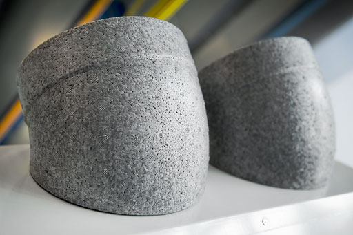 Een aantal jaren geleden won Synprodo de Material Engineering Award voor de complete behuizing van een boiler in EPP. Door middel van de toevoeging van een (laser)structuur in de matrijs wordt het uiterlijk van geëxpandeerd kunststof aantrekkelijk en duurzaam, en geeft de mogelijkheid afscheid te nemen van conventioneel toegepaste materialen zoals staal en thermoplastische kunststoffen.